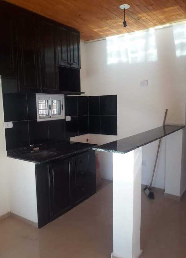 Cocina con cerámicos, cañería de agua fría, opcional caliente, baño terminado con cañería fría opcional caliente, carpeta, cerámicos, grifería, ducha, inodoro, vanitorio, bidet, sanitarios completos, cielo raso, barnizado al ladrillo, aberturas completas, exterior e interior de madera dura completa, sistema llave en mano.